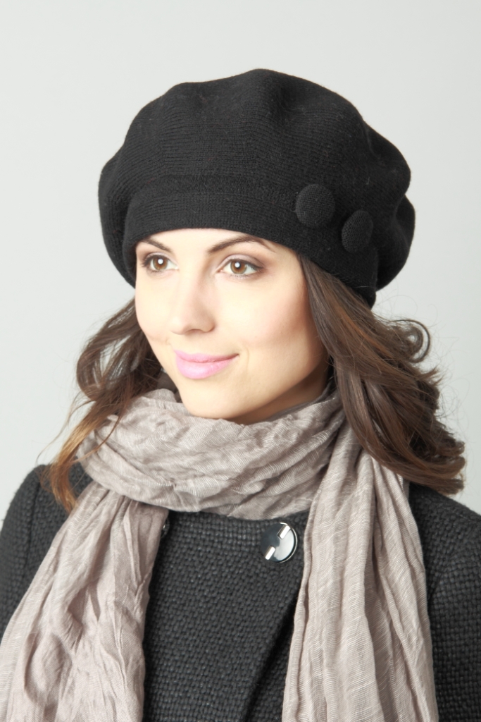 декорирован обтянутыми трикотажом пуговицами в тон берета.