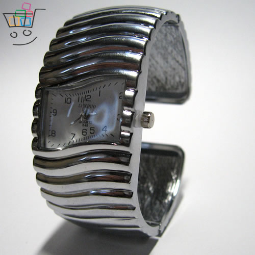 Металлический корпус. Кварцевый механизм. Жесткий, единый с корпусом часов, браслет